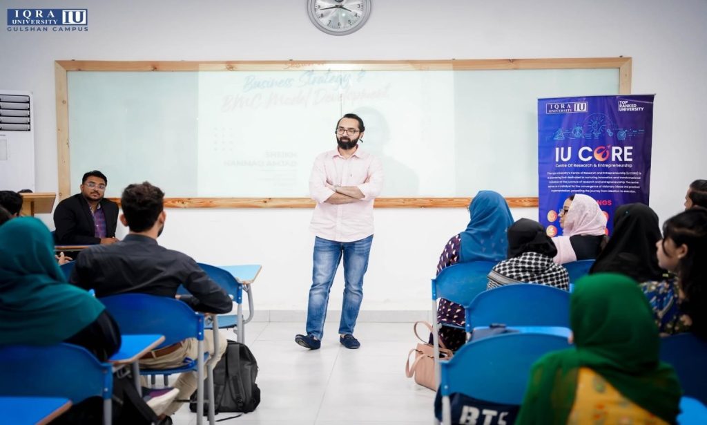 IU CORE recently conducted an insightful session on “Business Strategy & Business Model Canvas (BMC) Development” led by Mr. Sheikh Hammad Amjad. The session offered valuable frameworks and practical tools to help Startups & Students design effective business models and craft growth-driven strategies. Participants left with a clearer roadmap for transforming their ideas into scalable […]