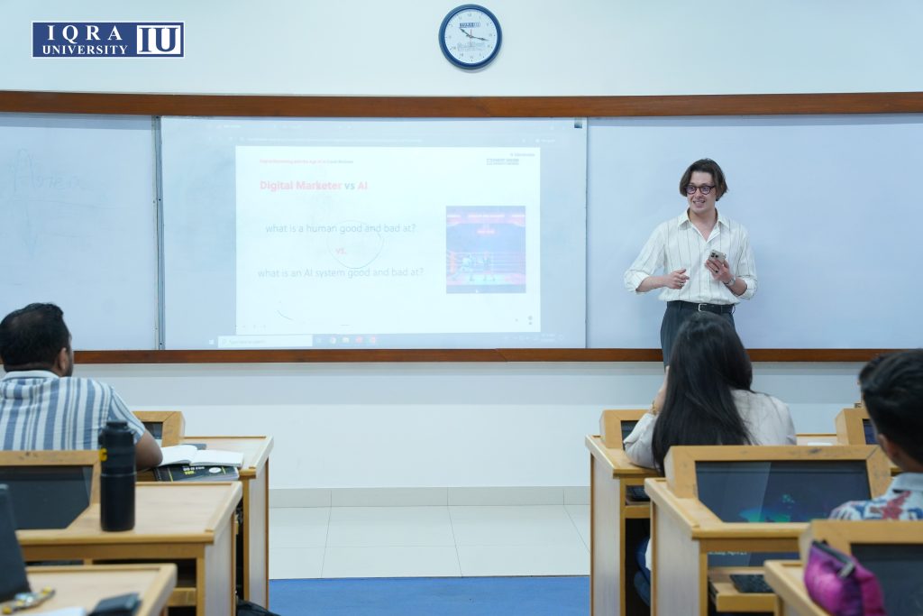Iqra University hosted a hands-on workshop on April 29, 2025, exploring the intersection of digital marketing and artificial intelligence. Titled ‘Digital Marketing in the Age of Artificial Intelligence (AI),’ the session was led by Josh Bircham, Course Leader – Digital Marketing at Robert Gordon University. With his global perspectives and engaging approach, Bircham brought fresh […]