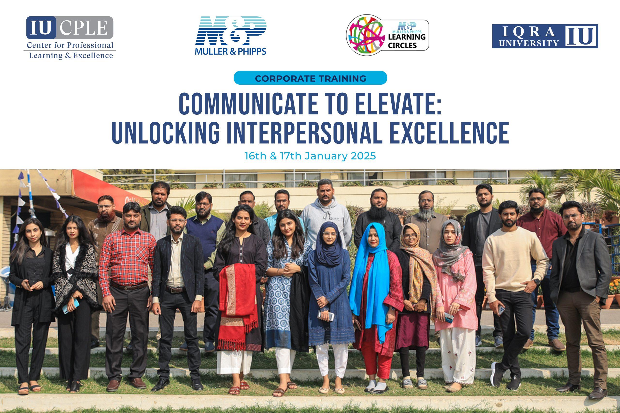 To elevate communication to a new standard, Iqra University’s Centre for Professional Learning and Excellence (CPLE) introduced a game-changing corporate training program: ‘Communicate to Elevate: Unlocking Interpersonal Excellence.’ Conducted in partnership with employees from Muller & Phipps Courier Company, the two-day program on February 16th and 17th, 2025, addressed the modern challenges that middle managers face in connecting leadership goals to operational outcomes.