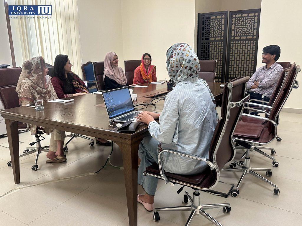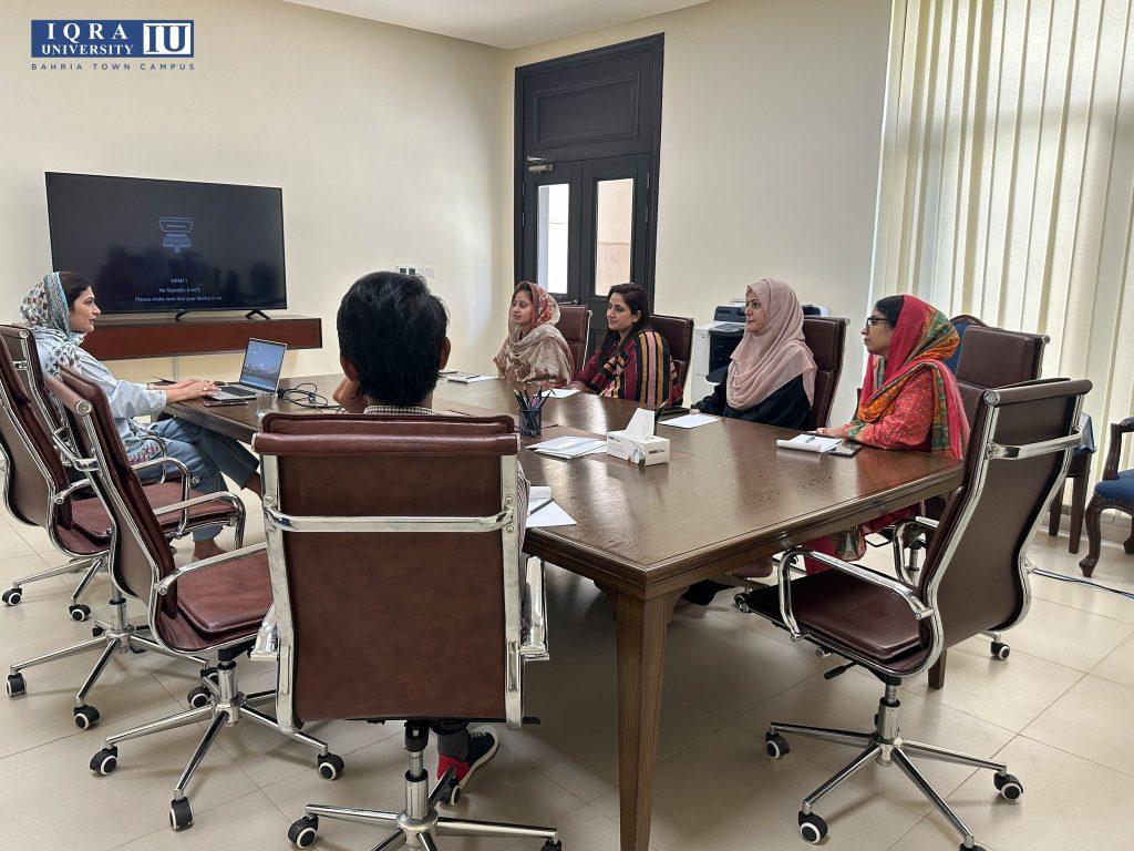 IQRA University ORIC organized a faculty-ORIC interactive session at Bahria Campus. During the session, Manager ORIC Ms. Zareesh presented ORIC’s objectives, and its role in promoting research, innovation, and commercialization, along with sharing stories of global research achievements. Various topics were covered, such as research grants, research outcomes, international conferences, financial support from HEC and globally, industrial projects, consultancy opportunities, capstone projects, and sustainability and capacity building.