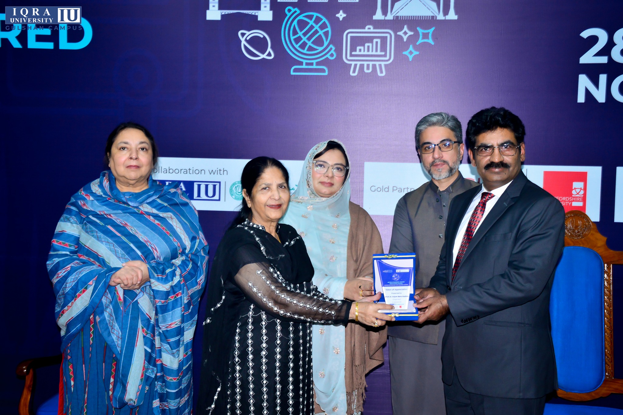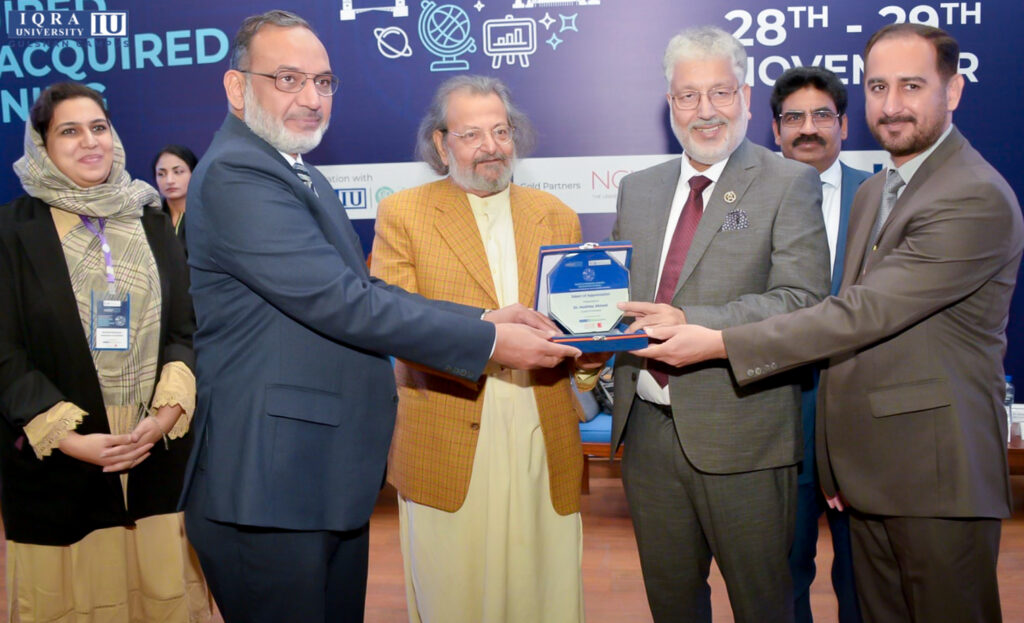 A two-day International Conference on 𝐑𝐞𝐯𝐨𝐥𝐮𝐭𝐢𝐨𝐧𝐢𝐳𝐢𝐧𝐠 𝐇𝐢𝐠𝐡𝐞𝐫 𝐄𝐝𝐮𝐜𝐚𝐭𝐢𝐨𝐧, held on November 28th and 29th, 2023. It was jointly organized by IQRA University in collaboration with the International Islamic University Islamabad and International Centre of Excellence – ICE (a British education provider), and featured significant contributions from researchers, practitioners, and policy makers. The esteemed guests shared their academic and real-world insights, fostering a valuable exchange of knowledge on reconciling required and acquired learning.