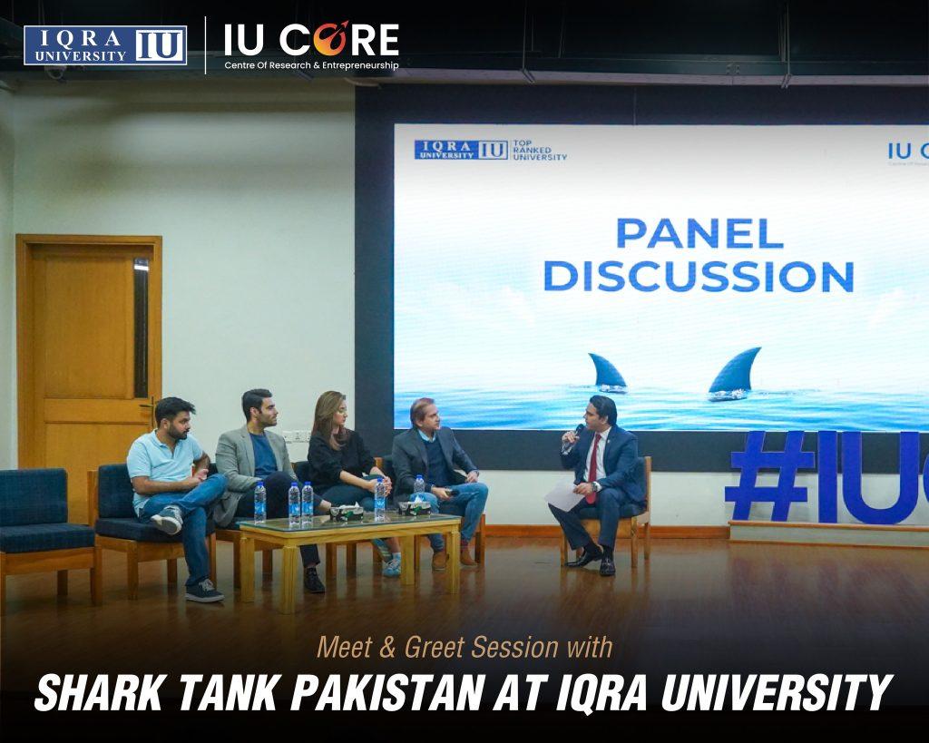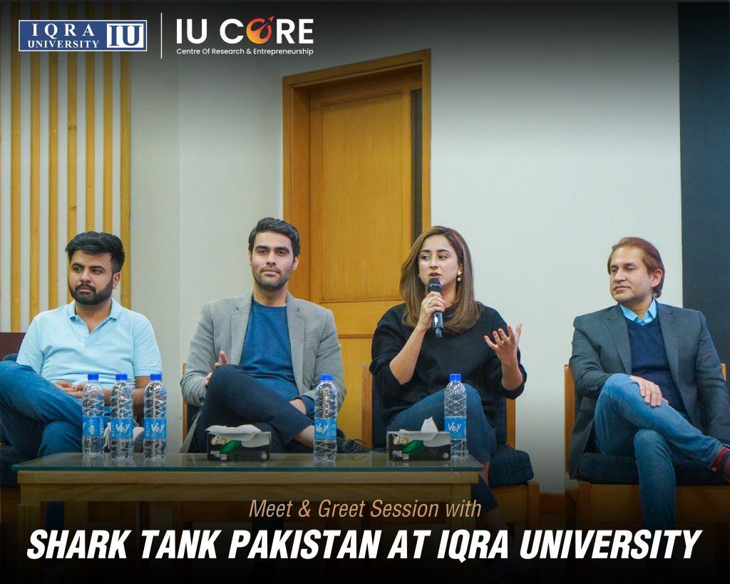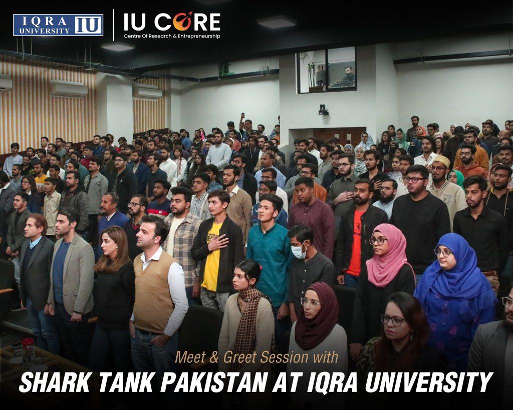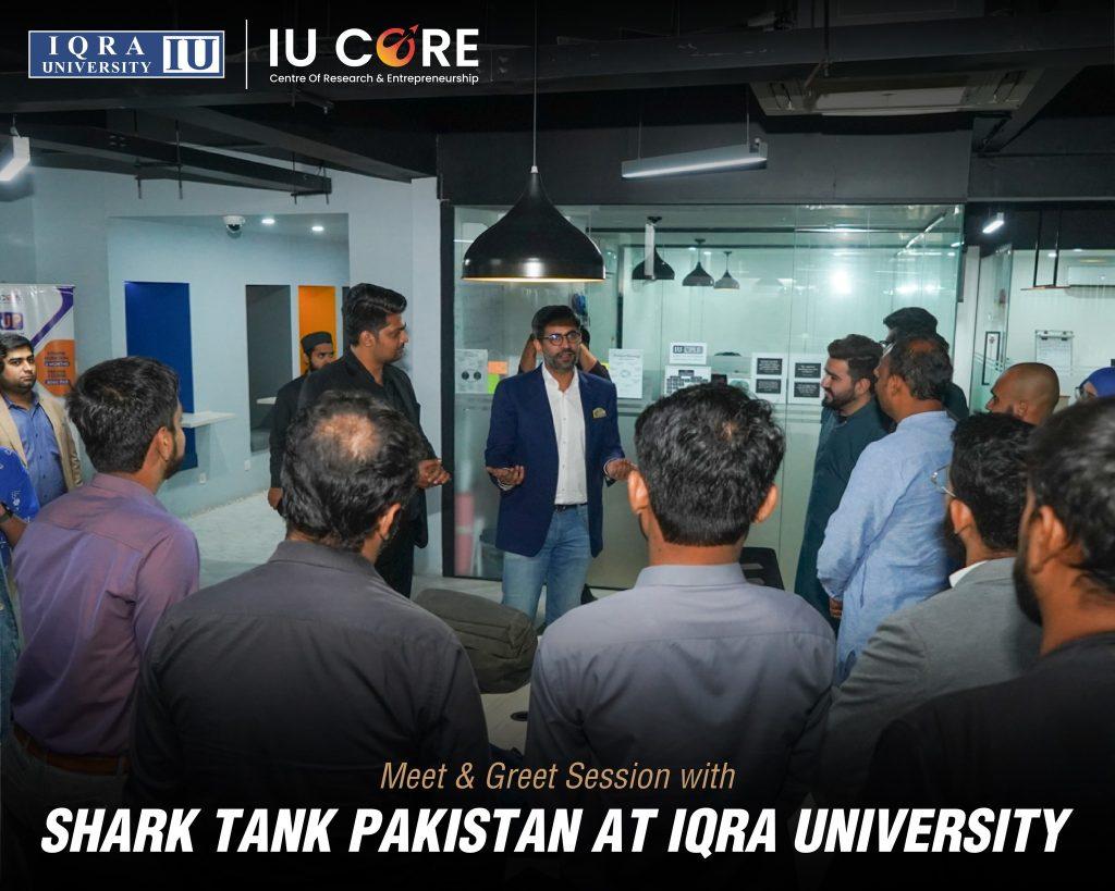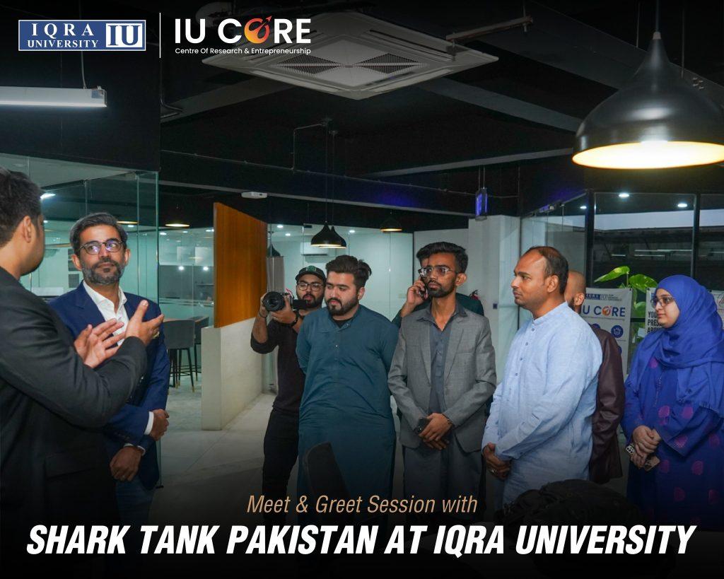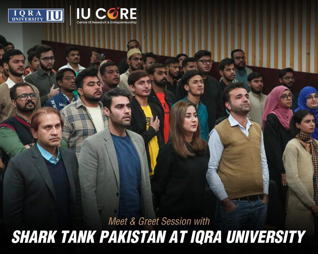 In an exclusive event aimed at bridging the gap between Pakistan’s most influential business minds and aspiring entrepreneurs, Iqra University hosted a Meet & Greet session with the distinguished panel of Shark Tank Pakistan. The event, organized by IU-CORE, took place at the Mini Auditorium, EDC Campus, Iqra University, marking a milestone in entrepreneurial education.