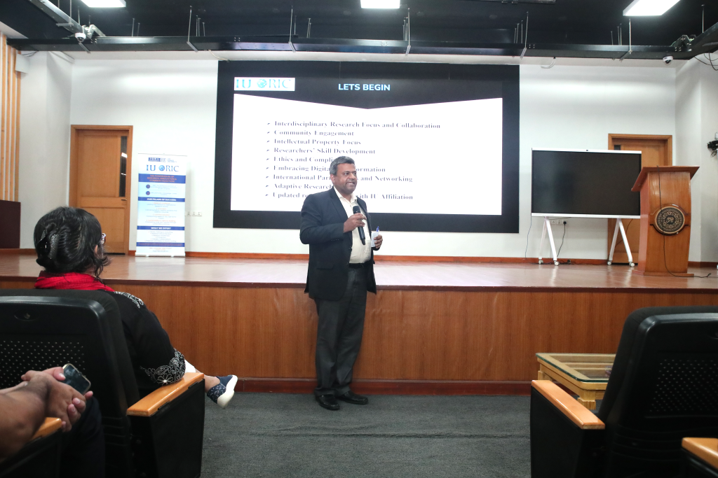 During the interactive Q&A session, Dr. Sameer, Director of ORIC, addressed several queries and provided clarifications on the Research, Innovation, and Commercialization Policy. His detailed responses provided faculty members with a clearer understanding of the university’s approach to research, innovation, and the relevant policies, helping them grasp how these initiatives align with IU’s broader goals. The session concluded with a strong sense of enthusiasm and readiness among the new faculty to engage with ORIC’s goals and contribute to IU’s dynamic research environment.