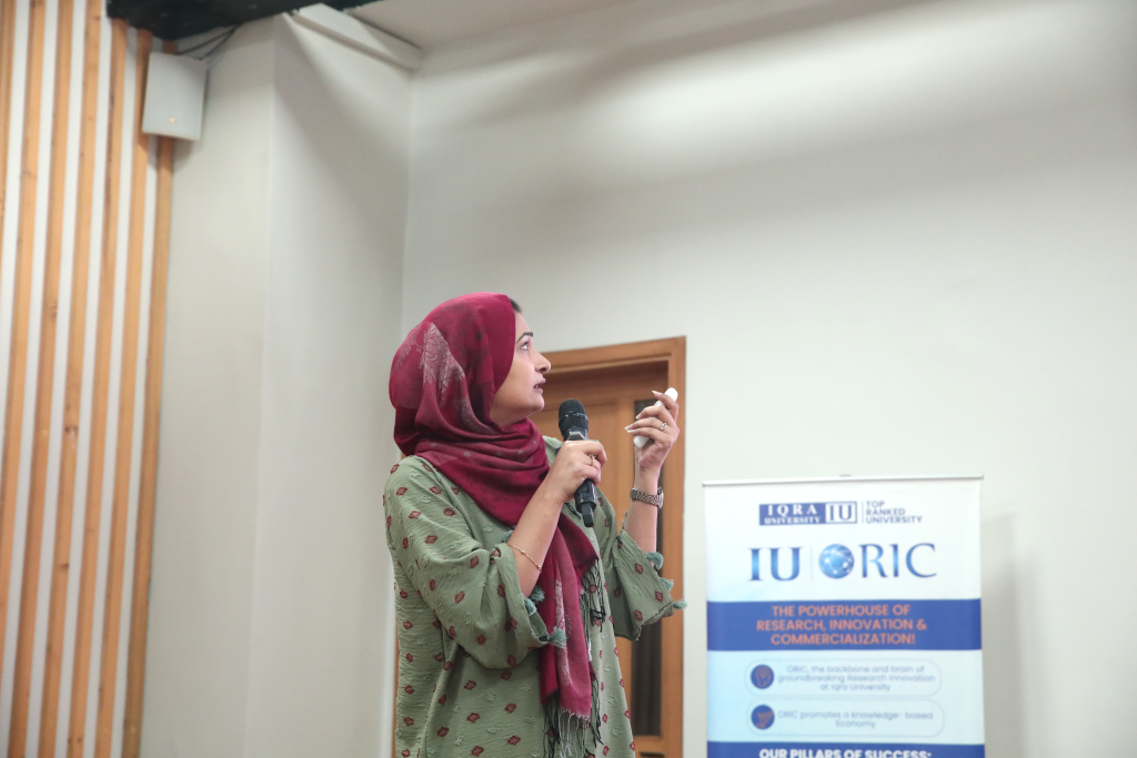 The Office of Research, Innovation, and Commercialization (ORIC) at IQRA University organized a session for newly onboarded faculty under the Faculty of Engineering, Science & Technology (FEST). The aim was to introduce them to the core elements of applied research, the importance of securing intellectual property rights, and the value of industry collaborations. Ms. Zareesh Zahra, ORIC Manager, led the session, emphasizing IU’s commitment to applied research to lead through the real-world impact.