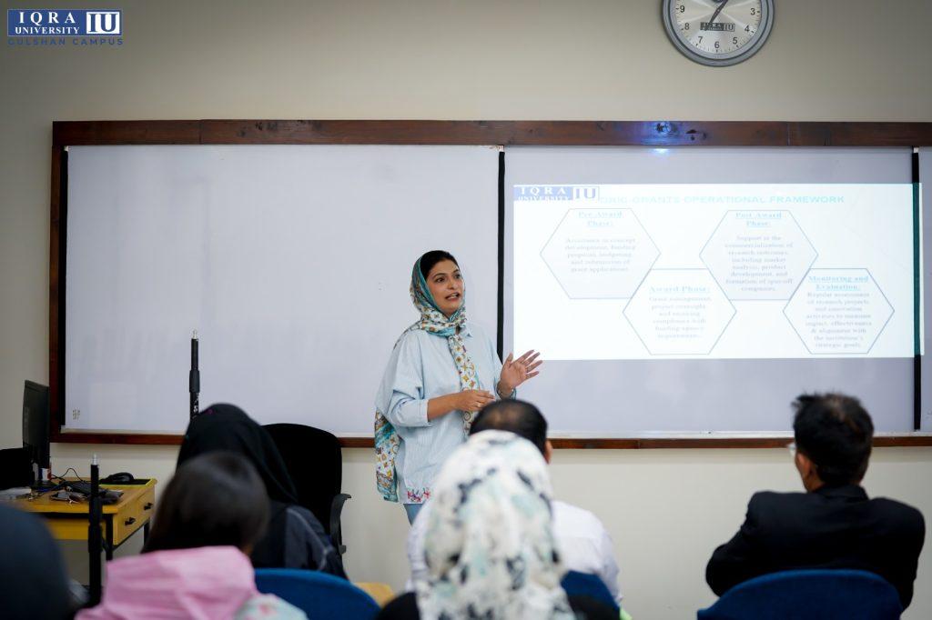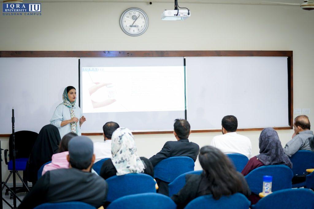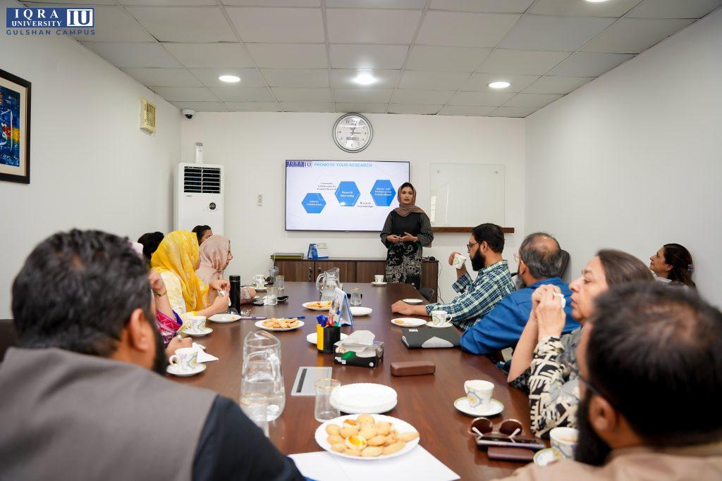 The Office of Research, Innovation, and Commercialization (ORIC) at IQRA University successfully conducted an impactful training session, led by Ms. Zareesh, focused on Research Impacts, Innovation, and Commercialization. This enlightening session took place at both the IU Gulshan and M9 campuses, bringing together esteemed faculty from diverse backgrounds and disciplines.
